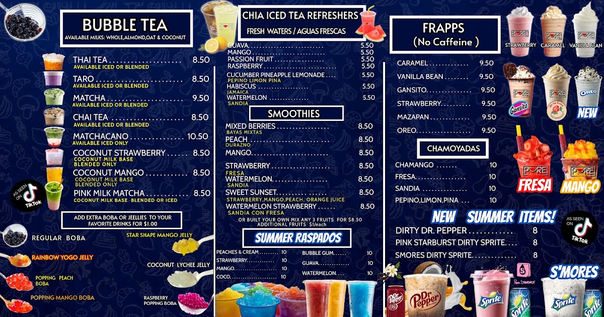The menu also boasts refreshing iced drinks like the Cucumber Pineapple Lemonade and exciting new summer items like the Pink Starburst Dirty Sprite, ensuring there's something for everyone to enjoy at this vibrant spot.